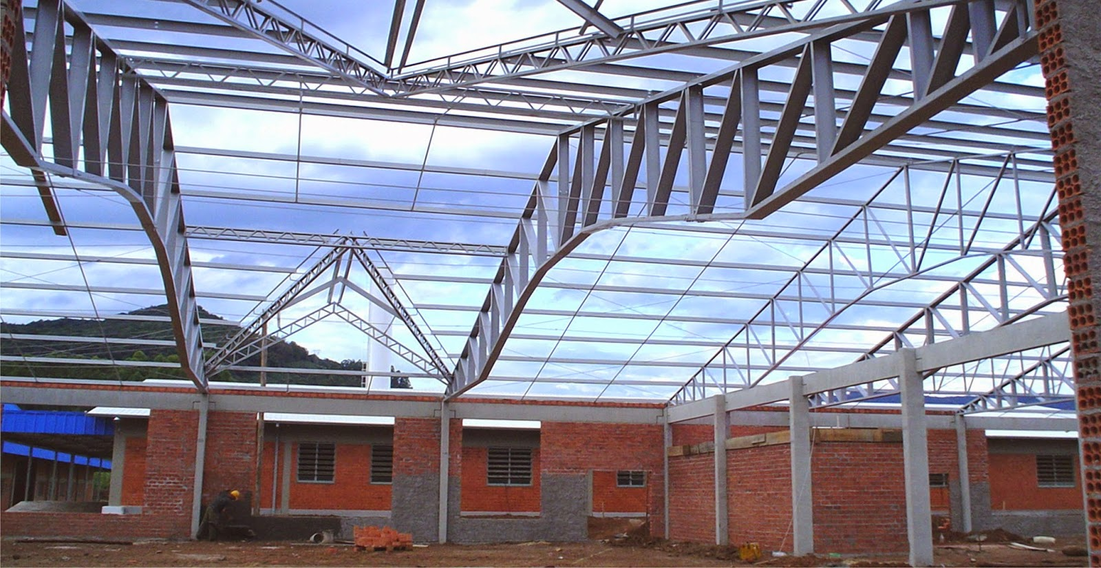 I collaborate in a Steel Structure and it's Assembling for a roof structure of a Solid Waste Deposit at Novo Hamburgo city, Rio Grande do Sul state. The structure was composed by deep webbed arcs with a clear span of 42m, purlins and bracings. Total area: 4,200 sq.m.